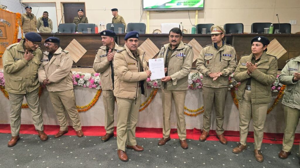 आज दिनांक 23-12-2025 को वरिष्ठ पुलिस अधीक्षक देहरादून द्वारा पुलिस लाइन देहरादून में पुलिस कर्मियों का सैनिक सम्मेलन लिया गया, सम्मेलन के दौरान एसएसपी देहरादून द्वारा उपस्थित पुलिस कर्मियों से उनकी समस्याओं की जानकारी लेते हुए उपस्थित अधिकारियों को उनके त्वरित निस्तारण के निर्देश दिये गये। गोष्ठी के दौरान एसएसपी देहरादून द्वारा उत्कृष्ठ कार्य करने वाले 56 पुलिस अधि0/कर्म0 को प्रशस्ति पत्र देकर सम्मानित किया गया, साथ ही भविष्य में भी इसी प्रकार अपने कर्त्तव्यों का निर्वहन करने के लिये प्रेरित किया।